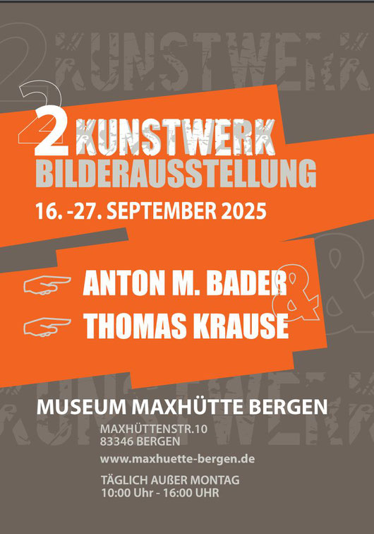 Vom 16. bis 27. September sind in den Hallen unseres Museums zahlreiche Bilder der beiden Künstler Anton M. Bader und Thomas Krause zu bewundern. Die Ausstellung ist zu den üblichen Öffnungszeiten des Museums zugänglich.